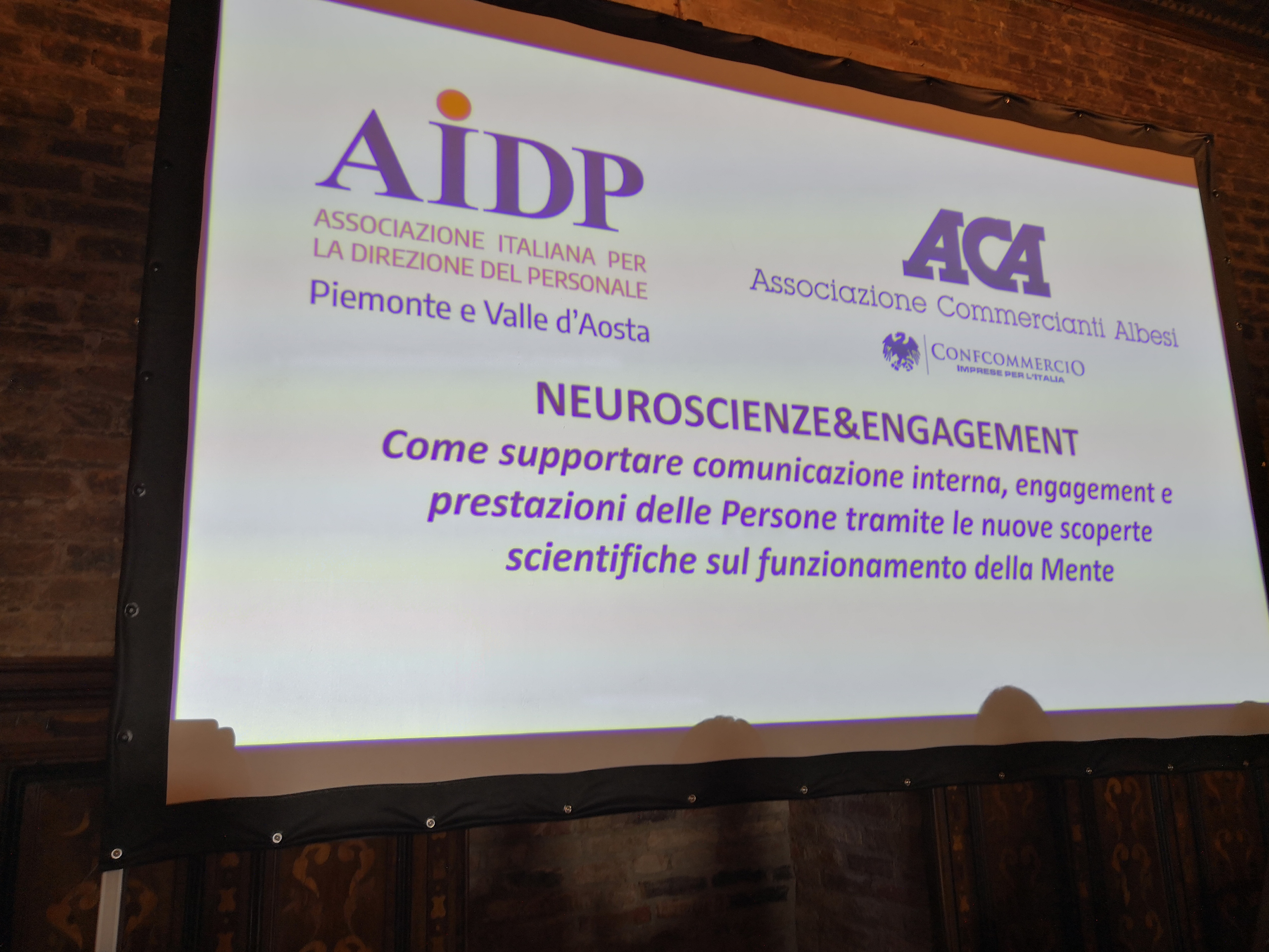 In una sala gremita dalle numerose persone presenti all'evento si è tenuto l'incontro di AIDP Piemonte e Valle d'Aosta sul tema delle Neuroscienze che ha visto la partecipazione di autorevoli esponenti del mondo accademico che hanno spiegato le dinamiche del neuromarketing applicate alla comunicazione interna in azienda.